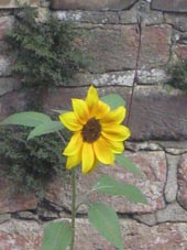 Mens hun stod og stirrede tomt frem for sig, troede hun næsten ikke sine egne øjne. De havde fokuseret på en solsikke, der bogstavelig talt voksede frem fra en lodret murstensmur. Hun kunne ikke få blikket fra den. Den var så smuk og vendte sin blomst mod solen, hvorfra den hentede al sin energi. Derfor fulgte den med sin krone solens gang hen over himlen. Den strålede. Den var i live.