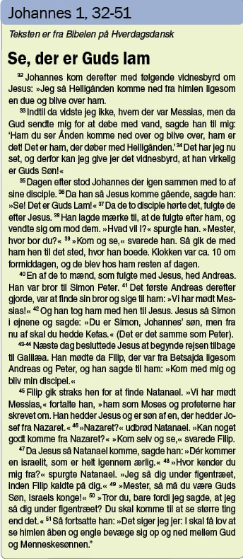I dagens bibelord møder vi den store overraskelse hos Nathanael. Da Jesus så ham, kunne han umiddelbart beskrive ham, og Nathanael undrede sig over, hvor Jesus kendte ham fra. I dette første møde lader Jesus Nathanael forstå, at der er flere overraskelser i vente i hans følgeskab. Du skal få større ting at se, sagde Jesus til ham.