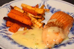 Det samme gælder egentlig Laks og Rodfrugter i fad. Også her er kalorieindtaget ikke urimeligt højt, og de kalorier, som er i retten, kommer primært fra sunde Omega 3 fedtsyrer i fisken. Retten kan ses ud fra filosofien bag paleo-mad eller stenalderkost, som det også kaldes. Her er teorien, at vores krop i udgangspunktet er skabt til grøntsager, frugt og kød, og at en kost baseret på dette vil give os en sundere og mere harmonisk krop.