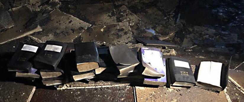 “Man skulle tro, at alt ville blive brændt til aske. Men ikke en eneste bibel blev brændt, og ikke et eneste kors blev skadet !” skriver brandmændene.