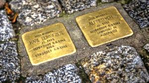 Den tyske kunstner Günter Demnig tog helt tilbage i 1992 initiativ til den såkaldte “snublesten”, som er en messingplade indlagt i en brosten med navnet på det glemte jødiske navn og dato for mordet på dette offer. Første sten blev nedlagt i 1992 i 50-året for Heinrich Himlers beslutning om “die Endlösung” – udryddelsen af 6 mill. jøder.