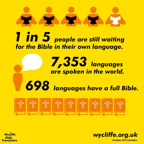 Ifølge statistikkerne, som inkluderer tegnsprog, findes der 7.353 aktive sprog i verden. Af disse har 3.384 sprog dele af Bibelen, mens 3.969 (der tales af 252 millioner) ikke har et eneste bibelvers.
