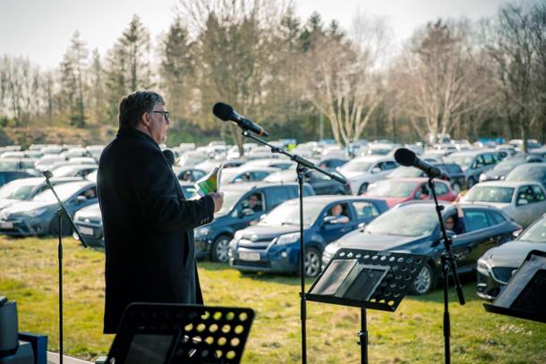 560 biler var med, da Betania Kirkecenter sammen med andre kristne holdt drive-in-gudstjeneste på Legolands parkeringsplads påskesøndag.