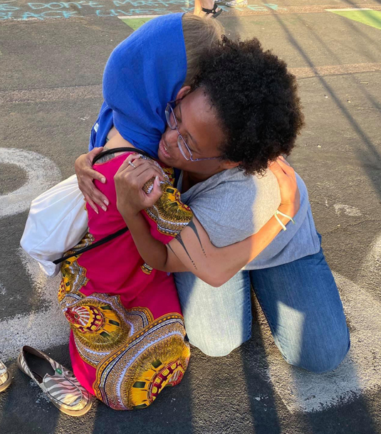 Også en anden deltager, Brandon Marlow, har delt billeder på Twitter, hvor mennesker beder sammen og omfavner hinanden uden skelen til raceforskelle.
