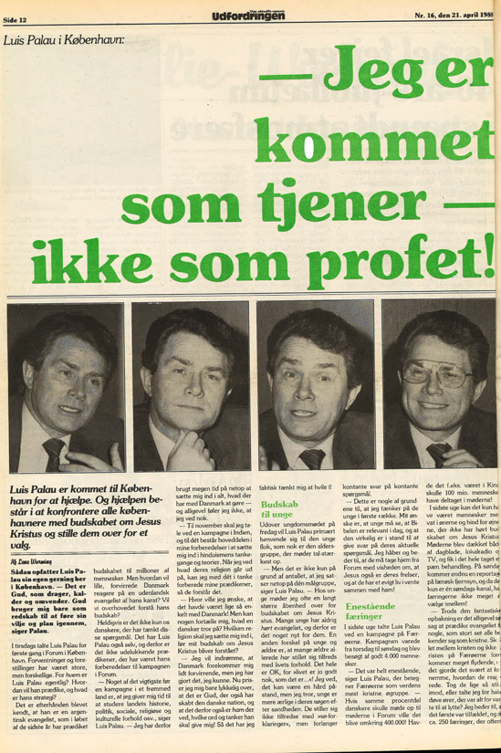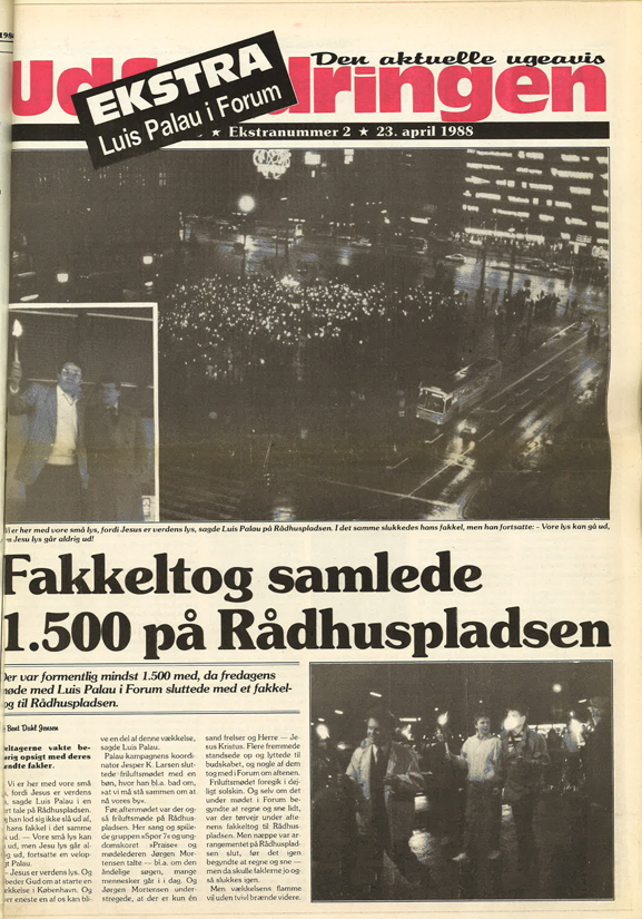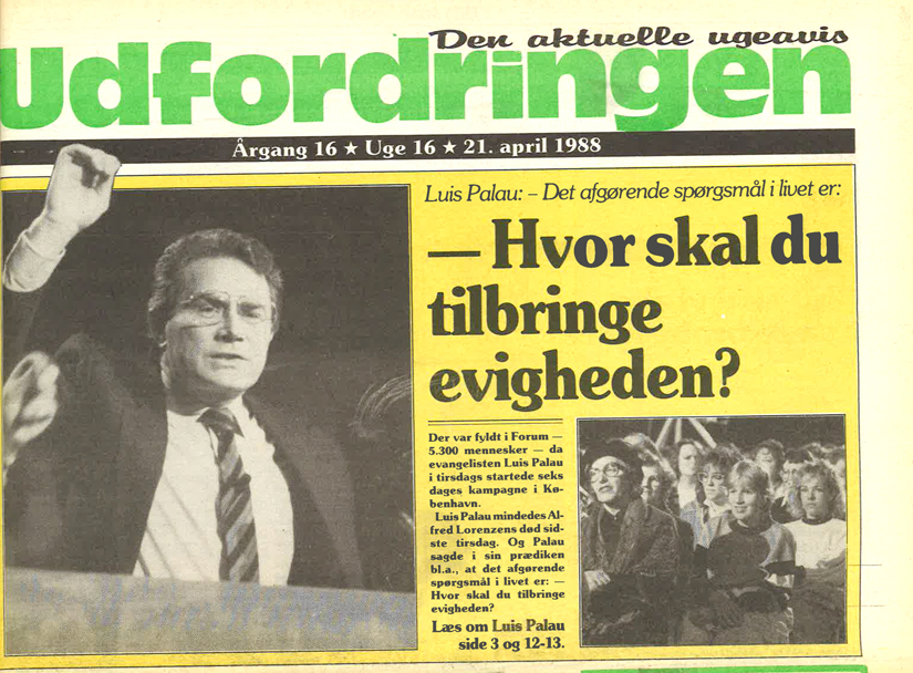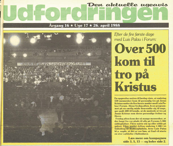 Fra den 26. april 1988 talte Luis Palau ved en stor fælleskirkelig kampagne i Forum i København.