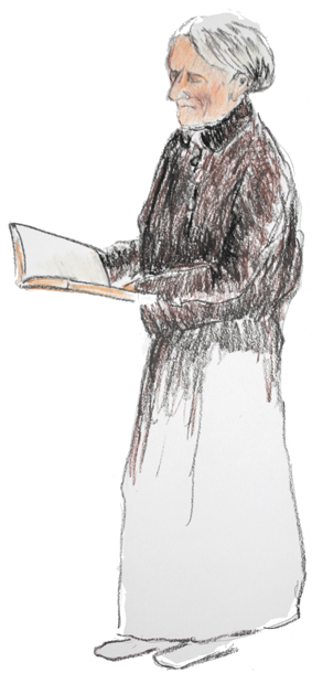 Utrætteligt samlede hun penge ind i en lille lærredspose, mens hun indtrængende fortalte om de stakler, som pastor Bodelschwing havde oprettet et hjem for.