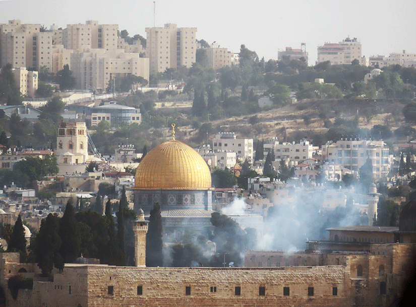 Mens jøderne bad til Israels Gud på udsigtspromenaden Tajelet, steg røgen op fra Tempelpladsen. Politiet brugte chokgranater mod muslimske oprørere, som kastede sten og brandbomber.