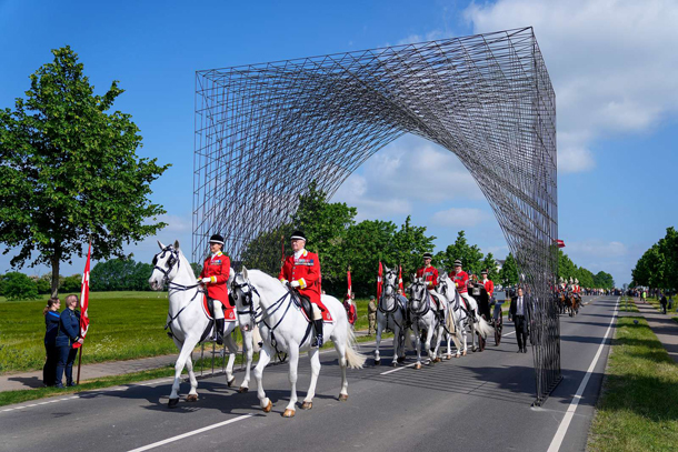 Forløbet var nemlig næsten som i 1920, hvor den daværende Majestæt Kong Christian X red over grænsen gennem en æresport på en hvid hest.