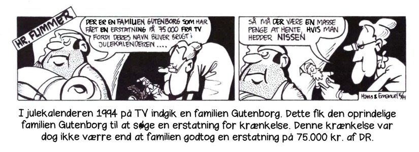 På billedet overrækker Denis en stribe fra 1994 til Udfordringens redaktør Henri Nissen. (Striben ses herunder.) Nissen føler sig dog ikke krænket over at dele efternavn med forfædres plageånder eller nutidens kravlenisser og julenisser.