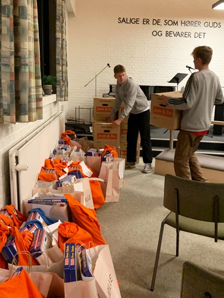 25 unge fra Luthersk Mission i Rønne har pakket kasser med tidlig julehjælp til folk på øen.