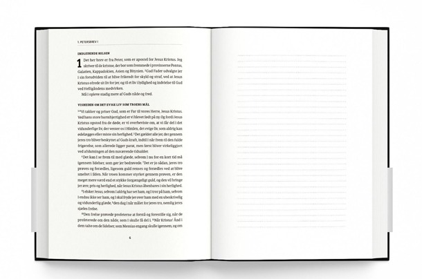 Forlaget Scandinavia, som står bag udgivelserne af Bibelen på hverdagsdansk, har nu udgivet Ny Testamentes 27 bøger som bibelnotesbøger med plads til egne notater på hver side.