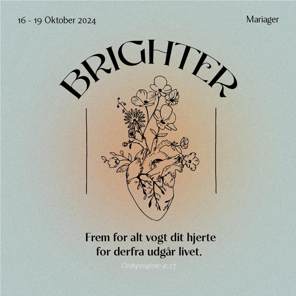Brighter blev med egne ord skabt for at ”disciple” og udruste unge kristne over hele Danmark til at have en dybere relation med Gud og til at tjene Jesus i deres lokale kirker. I år er temaet ’Vogt dit hjerte’. Et tema, der er inspireret af Ordsp