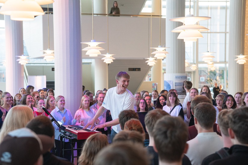 Daniel Ostersen leder sangen til Praise. Praise blev hurtigt et hit og gik på få måneder fra at være 150 mennesker den første gang til at melde udsolgt af de 700 gratis billetter på et halvt minut. Foto: Ungpraise
