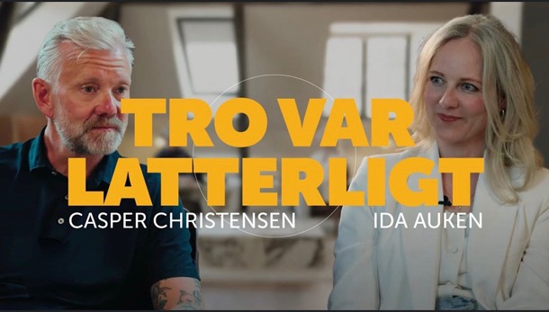 Komiker Casper Christensen og teolog og politiker Ida Auken er to af de kendte danskere, som har medvirket i ’Lad os tale om tro’. Foto: Screenshot