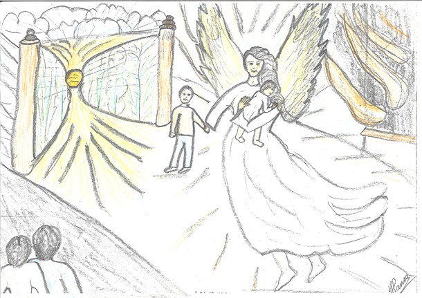 ”Men så viste Gud mig et syn af himlen, og jeg så, hvilket blomsterflor der er dér. Jeg så Tikva sidde midt i blomsterne, og hun var så fyldt af glæde. Og farverne var overnaturligt smukke. Jeg kan stadig se det for mig. Vi har ikke den slags her på jorden. Og Levi stod i et kæmpekor af unge mennesker. Og de sang, så jeg stadig kan høre det i mine ører. Det var så smukt. Smukkere end jeg nogensinde har hørt det på jorden. Og jeg forstod, at børnene nu havde mere, end jeg nogensinde kunne give dem.”