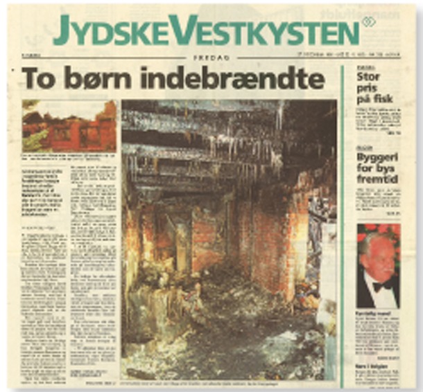 Hansa og Niels flygtede ud af det brændende hus via en trappe. Niels fandt hurtigt en stige og kravlede op til vinduet, hvor Tikva og Levi havde værelse. Han smadrede vinduet, men branden havde allerede så voldsomt fat, at den brændende hede gjorde det umuligt at komme ind. Kort efter eksploderede noget i huset, så vinduerne blev blæst ud imod dem på gårdspladsen. Forældrene var i dybt chok over, at deres børn på kun 8 og 14 år indebrændte i huset på 1. sal. De kunne ikke fatte, hvad der skete.