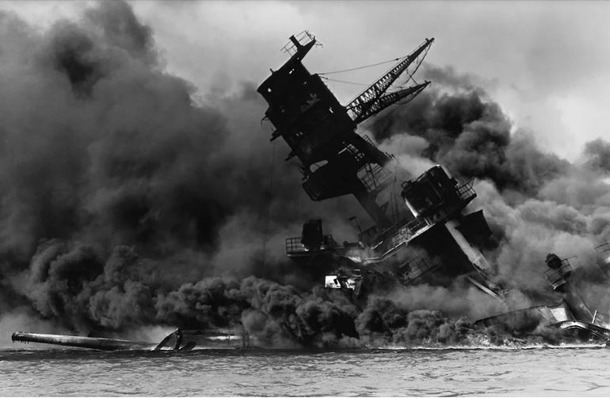 Søndag den 7. december 1941 klokken 7.55 angreb en japansk styrke på 183 fly uden varsel de amerikanske faciliteter på Oahu på Hawaii. I løbet af 30 minutter ramte flere typer bombefly de amerikanske flyvepladser og flådefartøjer. Et kvarter senere fulgte anden bølge af angrebet,hvor japanerne anvendte 170 fly. Blandt de amerikanske soldater var 2.343 dræbte, 960 savnede og 1.272 sårede; desuden ødelagde japanerne 151 af USA’s fly på jorden og sænkede eller beskadigede alle otte amerikanske slagskibe i Pearl Harbor. Japanerne mistede kun 28 fly. Dagen efter, den 8. december, erklærede USA krig mod Japan, hvorefter Tyskland og Italien erklærede krig mod USA den 11. december.