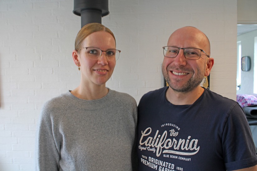 I parcelhuset i Holstebro, hvor familien Palm bor, bliver jeg mødt af varme og hjertelighed og familiens bomuldshund Alba, som hopper af glæde.