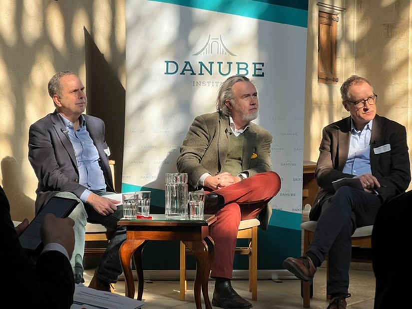 Yderst til venstre ses Andrew Hawkins, som præsenterede en ny undersøgelse om briternes tro. I midten den kendte kristne forfatter Rod Dreher, og til højre biskop Graham Tomlin. Privatfoto