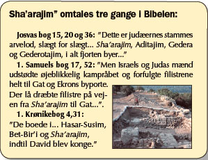 Israelske arkæologer har fundet Davids gamle fæstningsby Shaarajim (to porte). Byen er nævnt tre gange i Bibelen og ligger i Elah-dalen, hvor David besejrede Goliat.Efter det sensationelle fund af verdens ældste hebraiske tekst i Israel i november mener akæologer nu at have fundet en fæstning fra kong Davids tid.