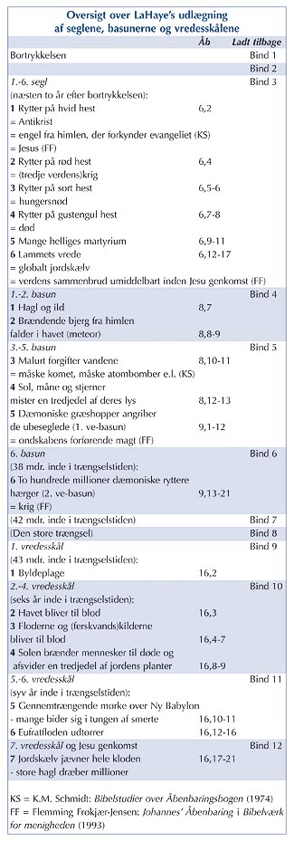 Naturligvis har vi ikke med Ladt Tilbage-serien en køreplan for endetiden (oversigten må på ingen måde forstås sådan); men det er ikke fuldstændig ligegyldigt, hvad LaHaye er nået frem til, ligesom det ikke er ligegyldigt, hvad andre Apokalyse-fortolkere har fået ud af deres udlægning: De kan alle sammen være med til at holde os vågne og skærpe vores opmærksomhed om det, der sker omkring os.