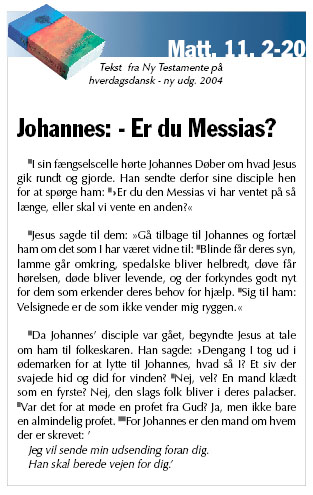 Guds plan med Johannes Døber var, at han skulle forberede folk på, at Jesus, den længe ventede Messias, nu ville gå i aktion. De fleste kendte profetierne om Messias, der ville komme som en konge og genoprette Guds folk, israelitterne, – men ikke mange havde gættet, hvordan han i virkeligheden ville være.